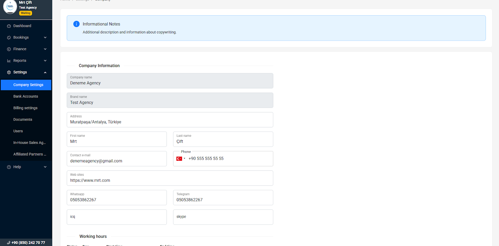 After account creation, go to Settings > Company Settings and complete the following fields: