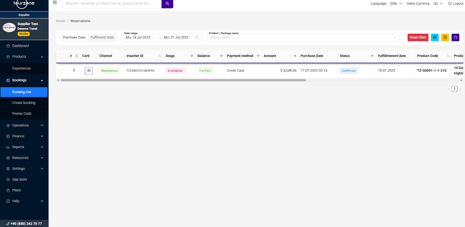 The Booking List panel is your main dashboard to view, filter, and manage all reservations made for your products. You can analyze transaction details, track reservation stages, and adjust display settings to match your operational needs.