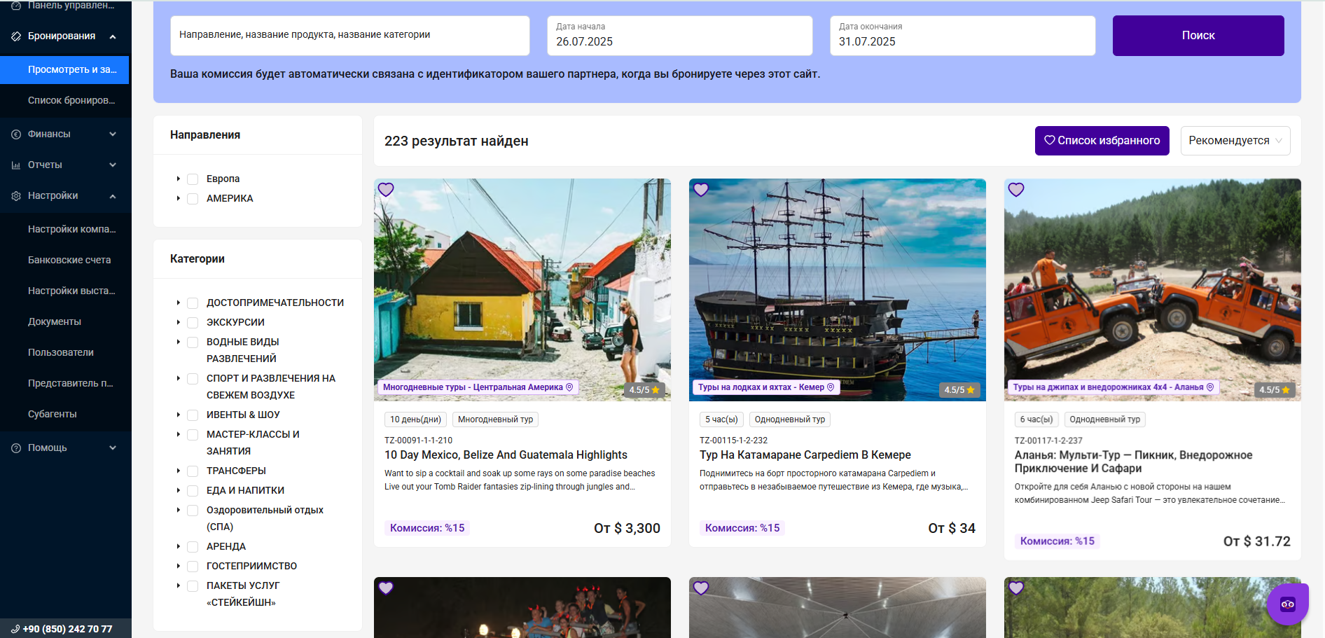 • Ставка комиссии по каждому туру указана прямо на карточке продукта в панели партнёра