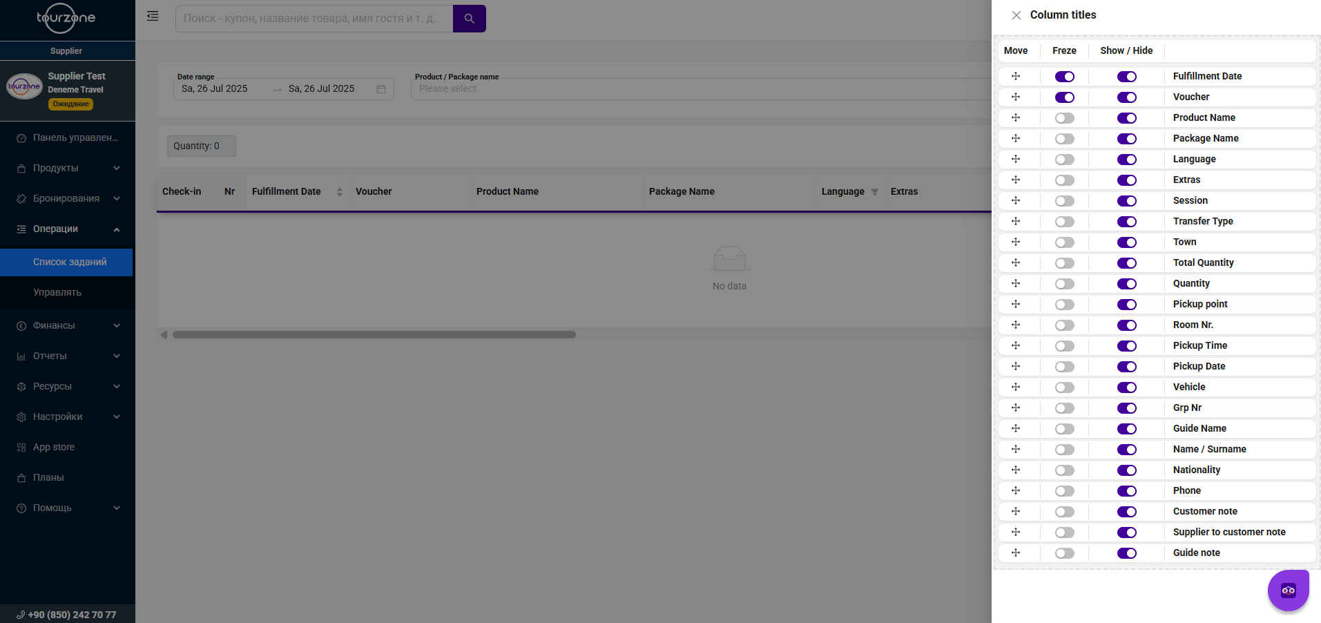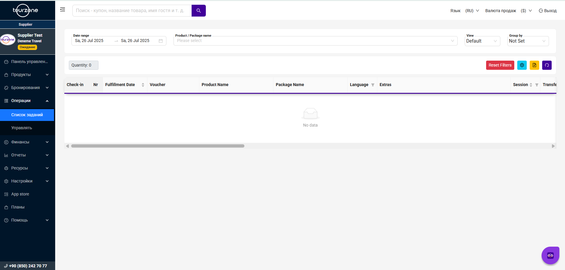 Панель поставщика Tourzone > Операции > Список заданий