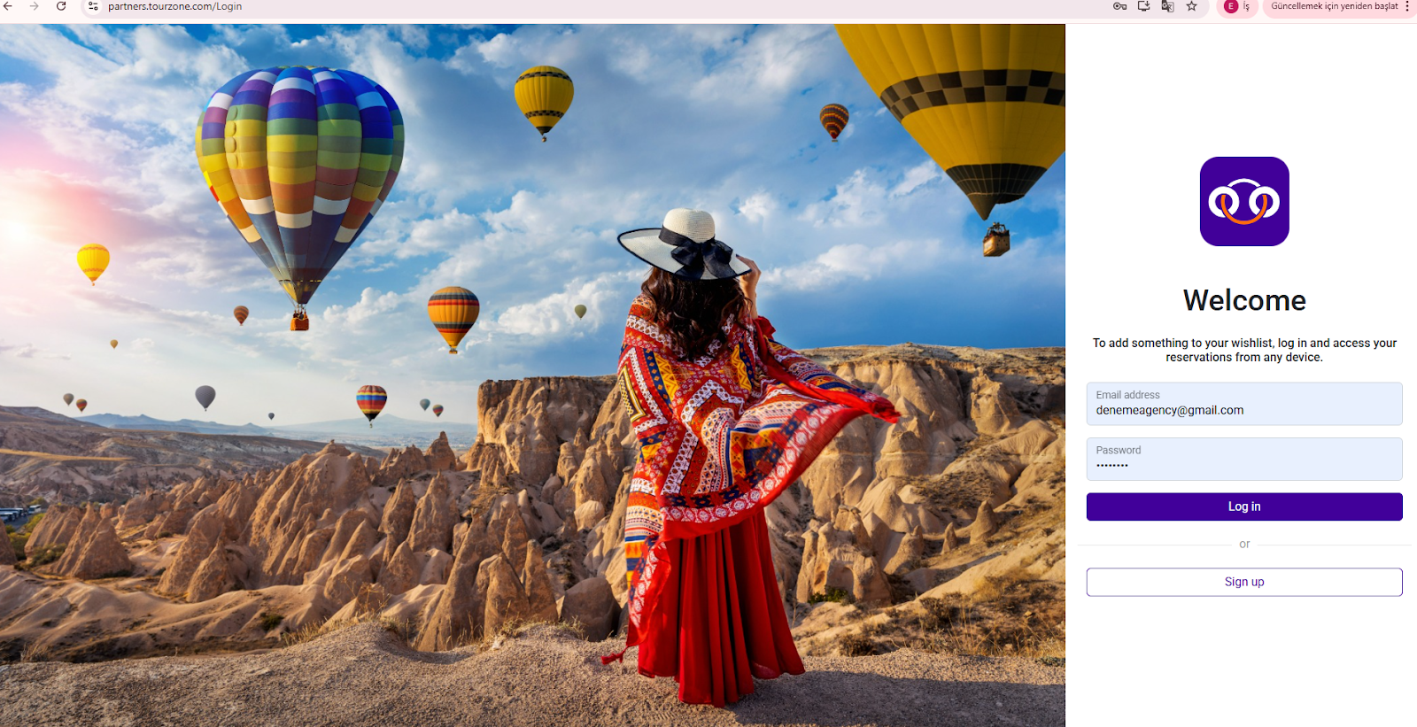 https://partners.tourzone.com/Dashboard adresine gidin ve "Sign Up" butonuna tıklayın. Talep edilen bilgileri doldurun, mail adresinizi kontrol edin- onay maili geldikten sonra panelinizi kullanmaya başlayabilirsiniz.