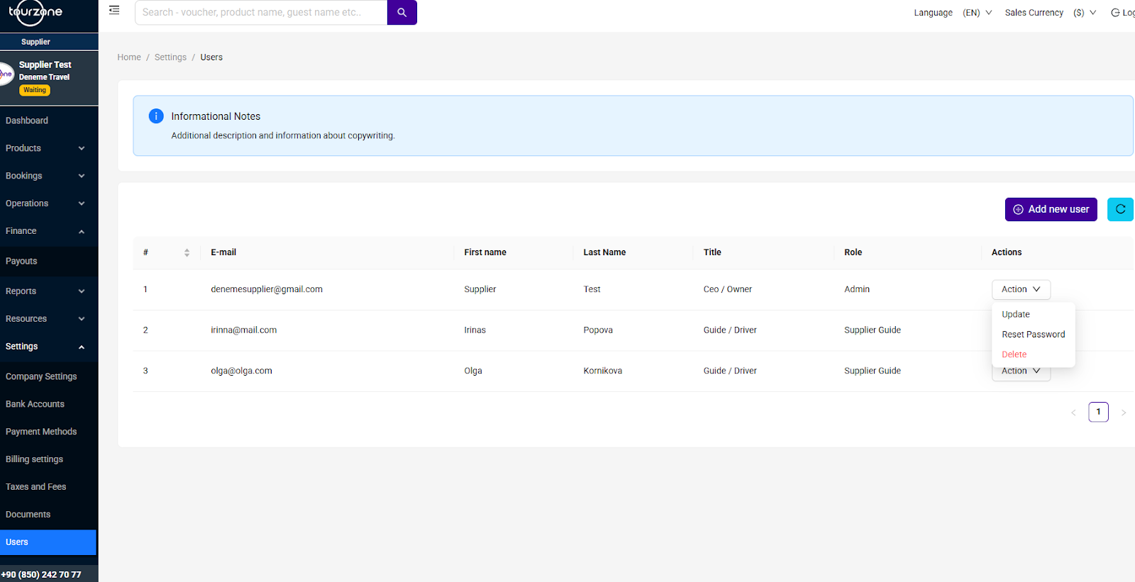 ✅ Profesyonel İpucuRolleri dikkatli kullanarak operasyonlarınızı güvenli tutun. Yönetici (Admin) erişimini yalnızca güvendiğiniz personele verin, rehber veya operasyon personeline sınırlı roller atayın.