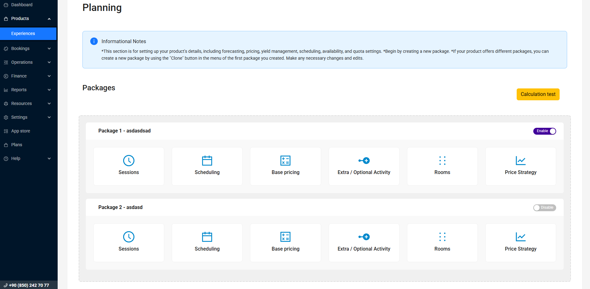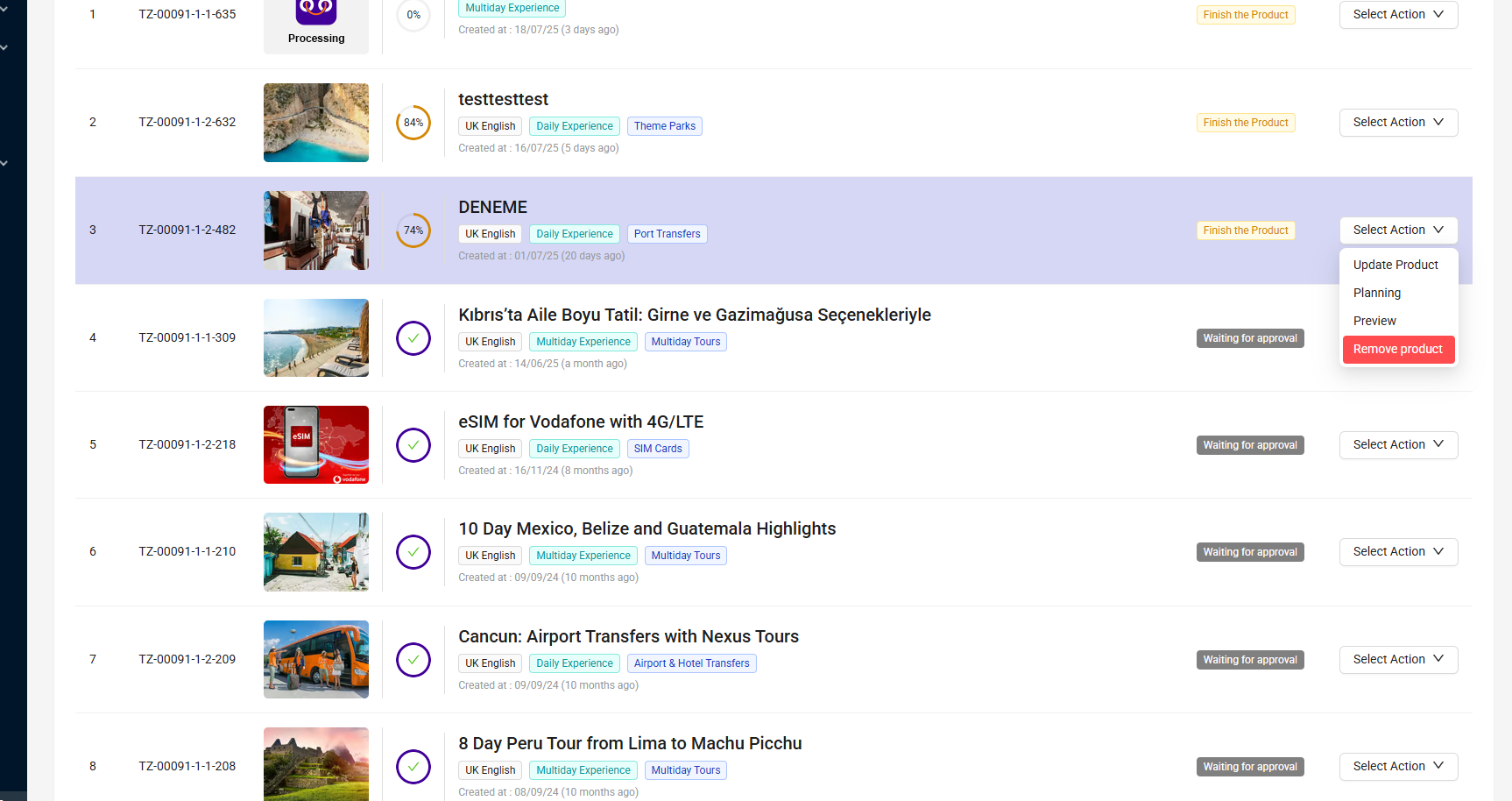 Ürünler > Deneyimler > Liste > İşlem Seç > Planlamayı Güncelle / Ürünü Kaldır